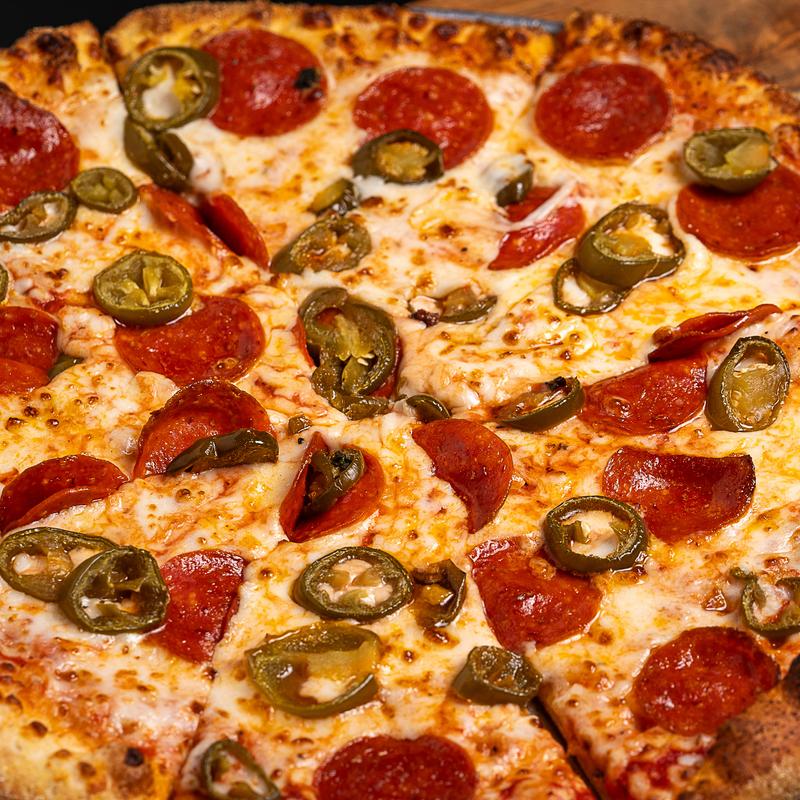 Pepperoni, Seasoned Ground Beef, Hatch Green Chile, Red Onions.